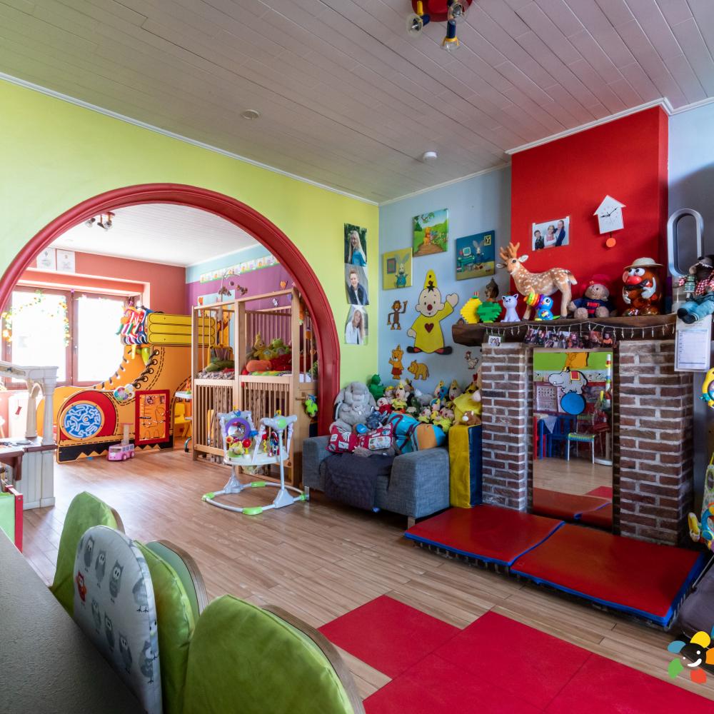 De onthaalouder werkt met 1 verticale groep: kindjes van verschillende leeftijden zitten bij elkaar.